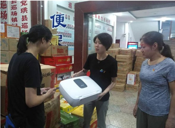 圖為宜賓市電子商務(wù)產(chǎn)業(yè)園黨委代表在巡場(chǎng)鎮(zhèn)人民政府交接募捐物資