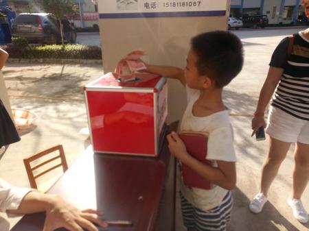(捐款現場,一位小孩在媽媽的陪伴下來到捐款現場,投進了數百元錢)